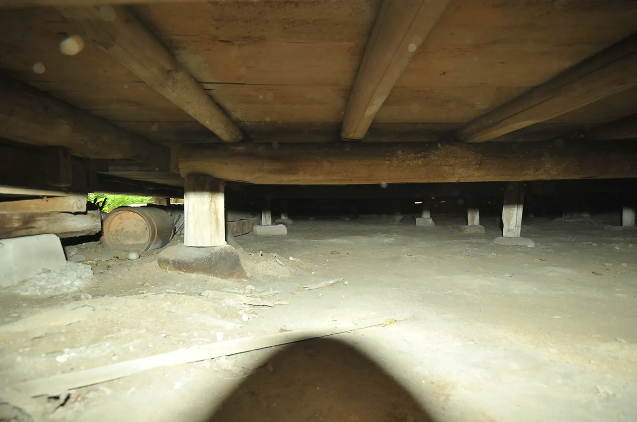 見るべきは屋根瓦の状態、床下の通気や臭い、できれば蟻道の有無、湿気、腐りの有無。